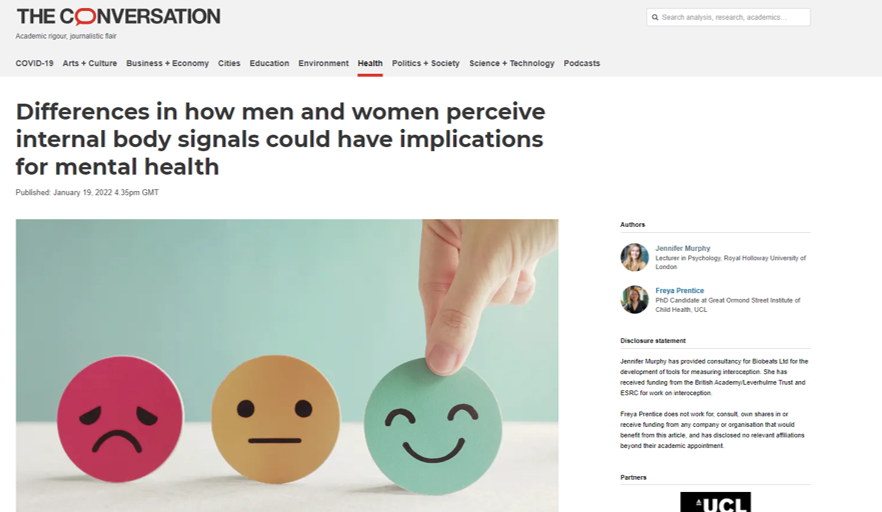 Prentice, F., & Murphy, J., (2022). Differences in how men and women perceive internal body signals could have implications for mental health. The Conversation.